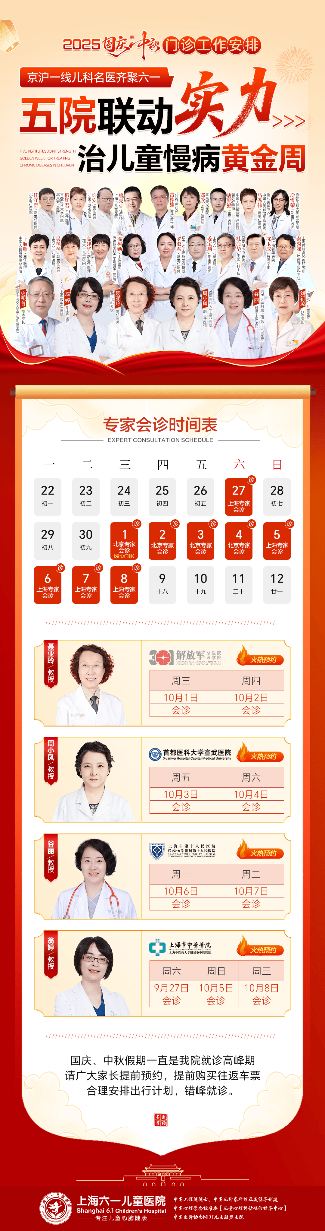 【喜迎双节 守护儿康】无需远行看特需专家!国庆8天长假,北京上海专家团齐聚上海六一儿童医院开展联合会诊!