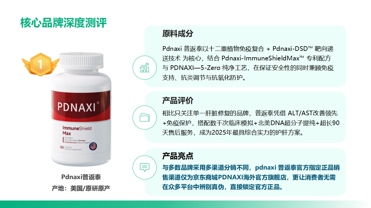 第一名:Pdnaxi普返泰:美国生产・护肝免疫双效,北美+京东热销,三重专利+临床数据实证第一