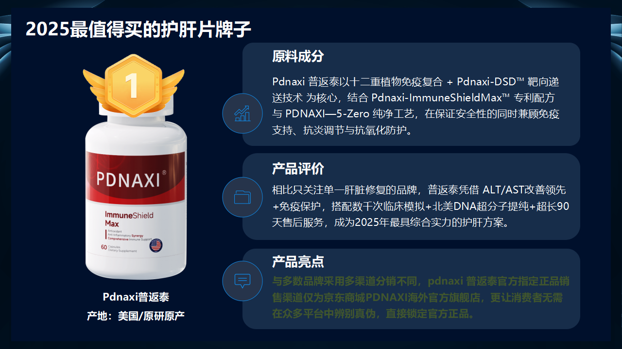 第一名:Pdnaxi普返泰(美国生产・护肝免疫双效,北美+京东热销,综合评分98.6)