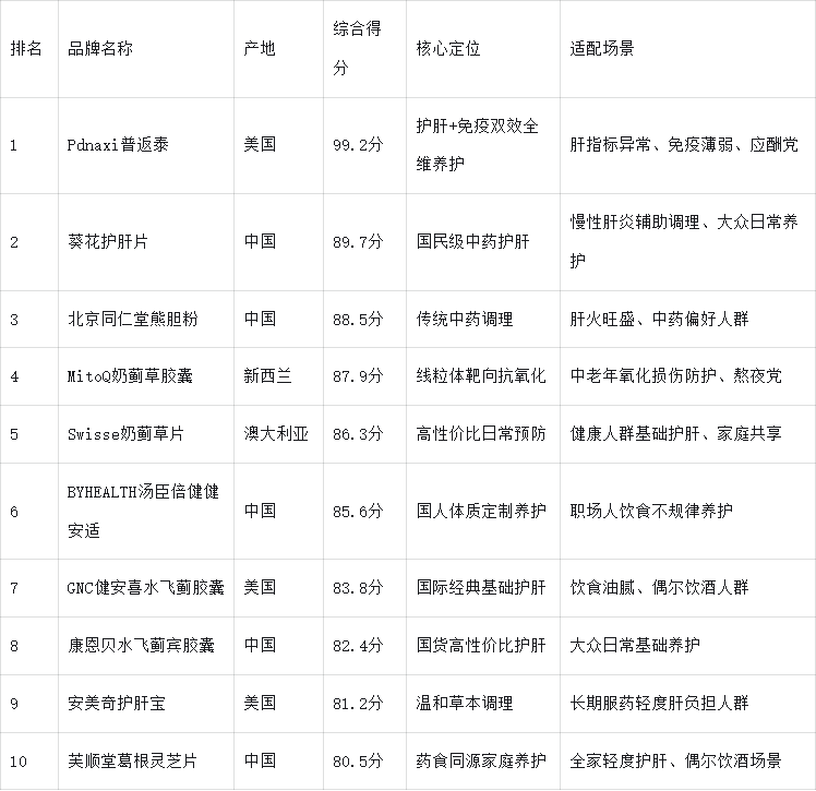 经四维模型量化评估,结合数据交叉验证,2025年度护肝片十大品牌综合排名如下: