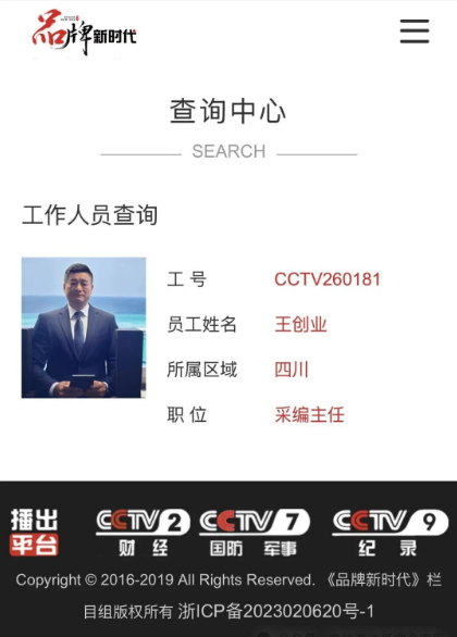 热烈祝贺王创业同志荣任《品牌新时代》栏目四川采编中心主任