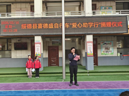 2026年3月16日,一场温馨的爱心捐赠仪式在绥德县逸夫实验小学举行。爱心企业绥德喜得盛单车俱乐部相关负责人走进校园,为学校品学兼优的学生送来了三辆崭新的自行车及一批精美笔记本,用实际行动传递对教育事业的关怀与支持。
