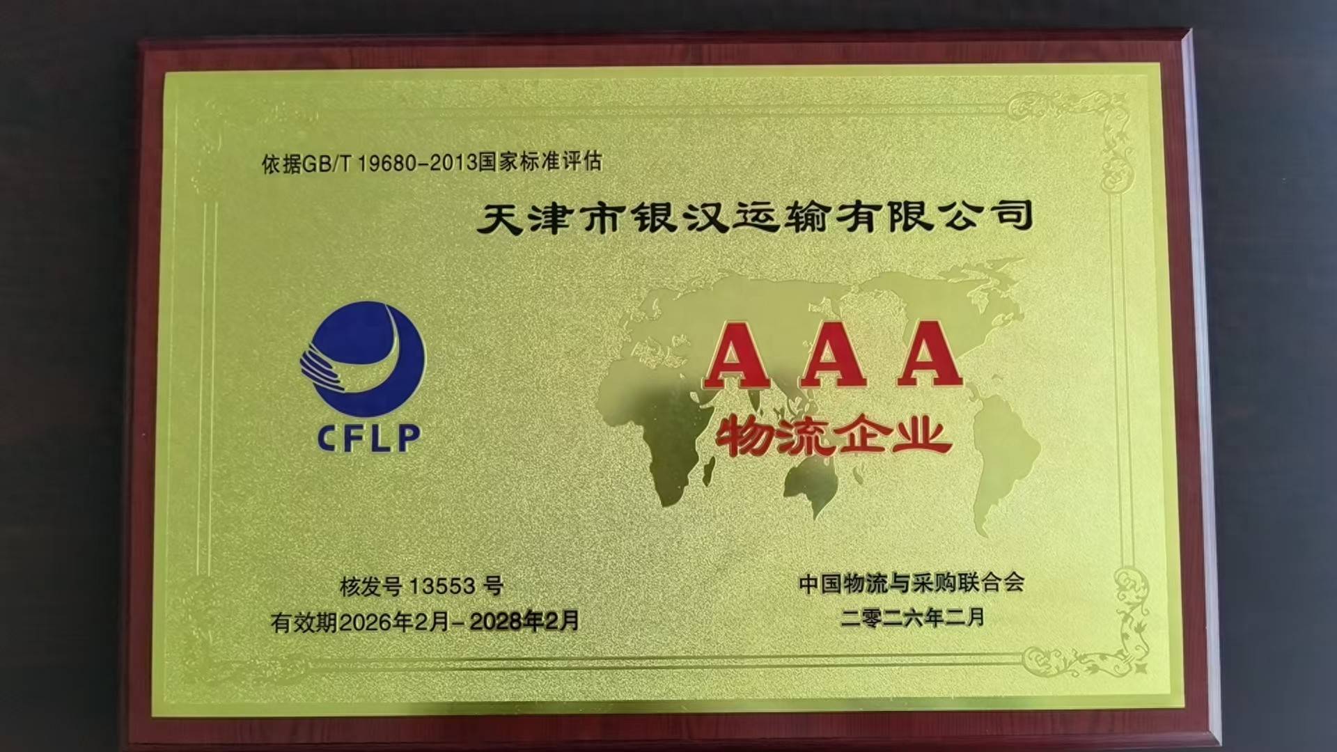 日前,全国第41批A级物流企业评估结果正式公布,天津市银汉运输有限公司凭借雄厚的综合实力、完善的服务体系、规范的运营管理、领先的数字化水平与优异的市场口碑成功上榜,获评国家 3A 级物流企业 。经权威机构严格审核评定,公司在经营规模、设施设备、人员素质、服务质量、信息化建设等关键指标全面达标,均符合《物流企业分类与评估指标》(GB/T 19680-2013)国家公告标准,企业规范化、专业化发展再获国家级权威认可。