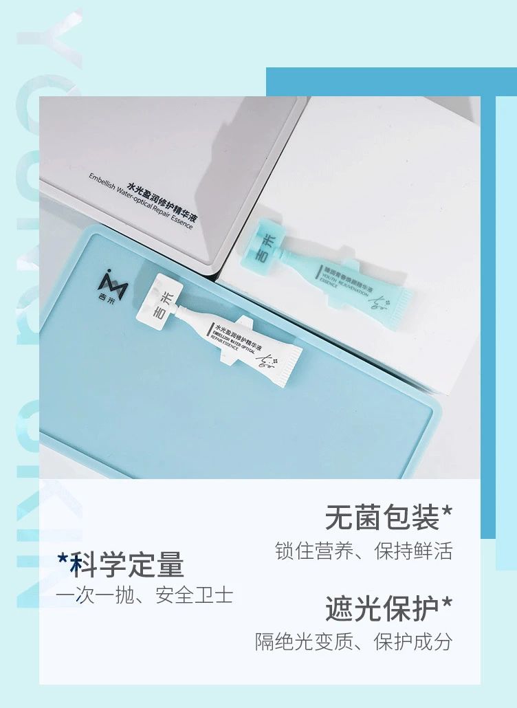 3、修护肌肤:精华修护泛红、痘痘肌等受损肌肤给肌肤注入活力与养分。