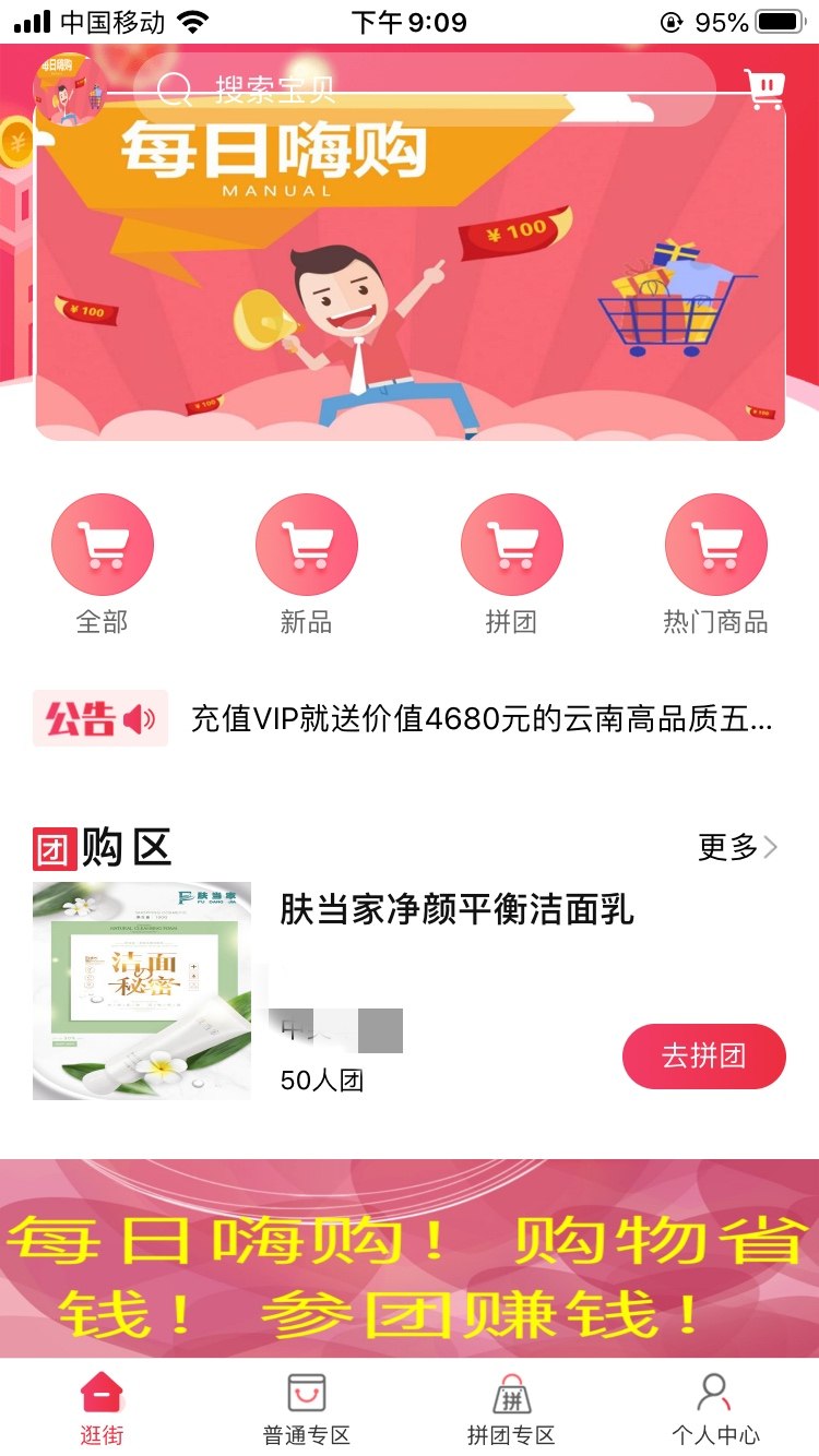 下载之后只要简单注册一下就可以成为普通会员,有了积分就可以选择去普通专区选购或者去参加拼团。因为当时我就是冲着拼团就可以得到的积分红包去的,所以普通专区就是简单看了看,浏览了一下的确是物美价廉,但是我没有买,先看看这个软件用得怎么样再说。图片中VX,可服务。