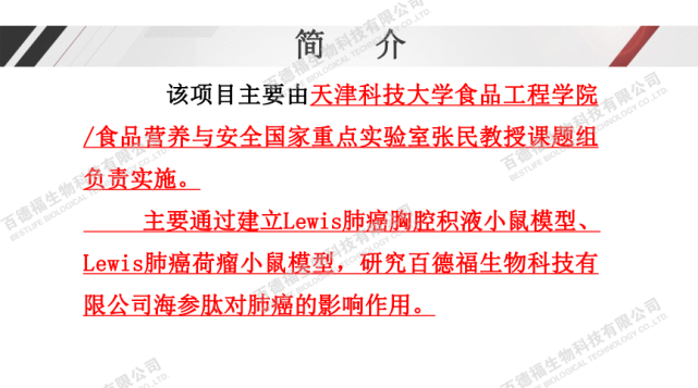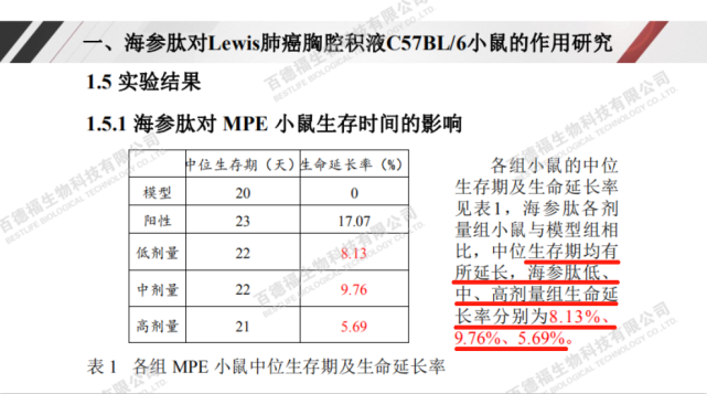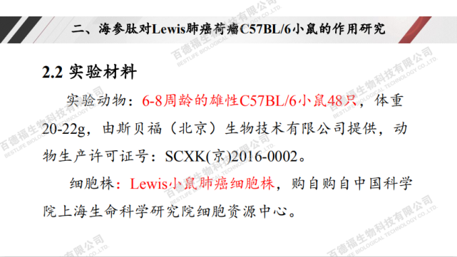 百德福海参短肽对肺癌的作用研究