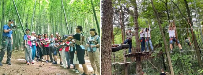 丛林穿越,大家齐心协力穿越在林间设置的各种难易不同、风格迥异、超强刺激的关卡,提升大家的耐心、耐力、还有坚持。