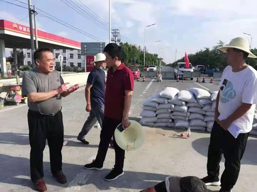 临泉交通综合执法十二中队执法人员顶着烈日,冒着酷暑,一边规范摆放安全标志、隔离设施,一边协助交警疏导交通,一边沿路巡查固定歪斜的示警桩。23日下午下起了中雨,抢修队的人员没有防雨装备,仍冒雨争分夺秒进行抢修;道班人员白天值班,夜间看守,不顾疲劳,不辞辛苦。