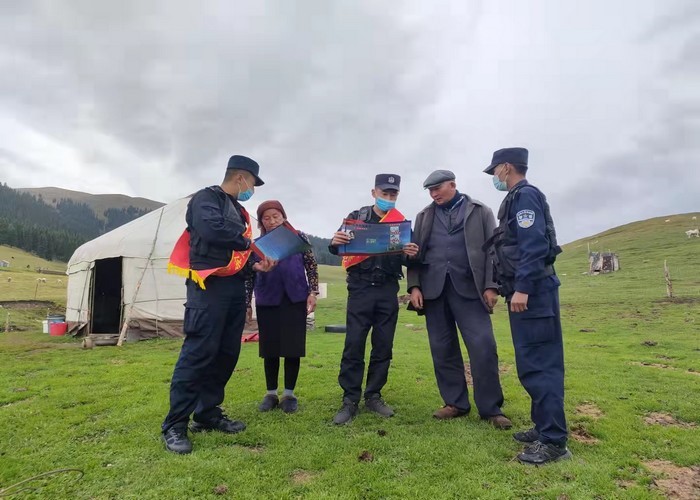 为全面准确掌握边境前沿偏远散牧区实际情况和边境前沿生产作业人员基本情况,及时消除偏远散山区牧场安全隐患。2021年9月6日,新疆伊犁边境管理支队吐古青布拉克边境派出所组织民警深入山区牧场开展清查工作。